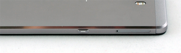 Левый торец - вставка под сим-карты и карту памяти, под ней - многофункциональная кнопка, которая умеет отслеживать аж три вида нажатий: одиночное, двойное и длинное. На каждый из видов нажатий можно навесить запуск любого приложения - это очень удобно.