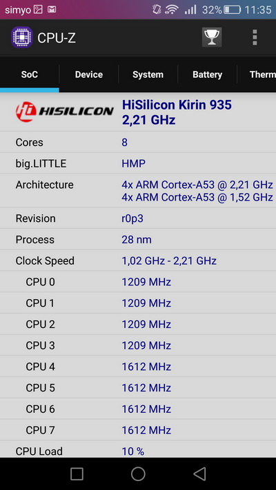 Процессор: Hisilicon Kirin 935, 8-ядерный