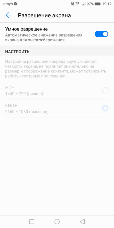 У меня на Huawei P9 plus после того как вышло обновление андроида до 7 снижение разрешения экрана фактичеки перестало работать. Как мне написали в поддержке, снижение разрешения стало работать только в некоторых программах, которые такой режим поддерживают. Хотя раньше разрешение экрана понижалось и для десктопа, и для всех программ.