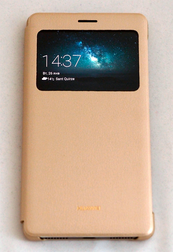 Причем это "умный" чехол: в прозрачном окошке там показывается специальный виджет.