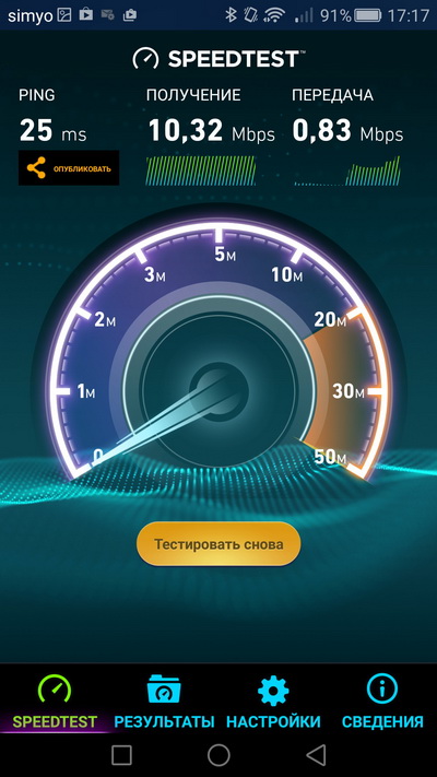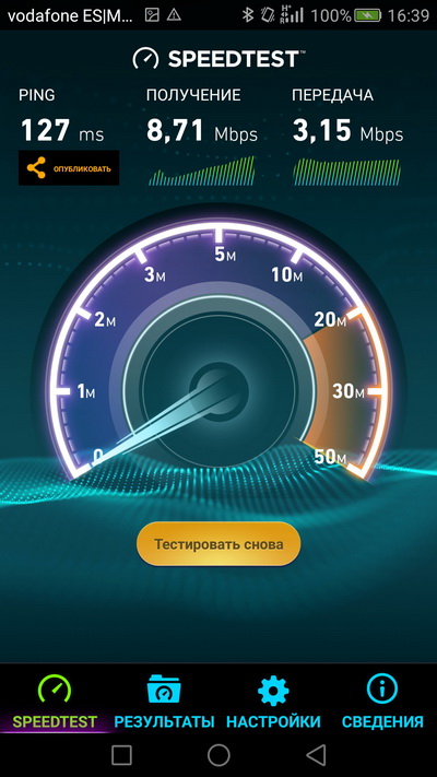 Скорость мобильного Интернета - на максимальном уровне для данных условий.