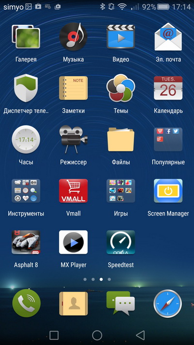 Традиционные для смартфонов Huawei оболочка EMUI и установленные в системе приложения.