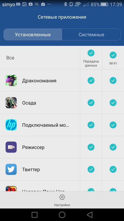 Настройки.