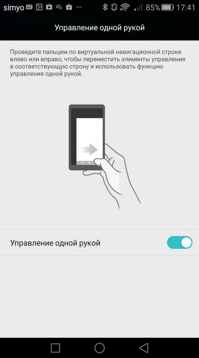 Управление одной рукой - при этом экран уменьшается и сдвигается к одному из нижних углов дисплея.