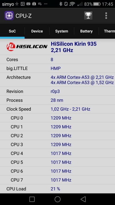 Процессор: HiSilicon Kirin 935, 8-core 64bit, 2,2 ГГц