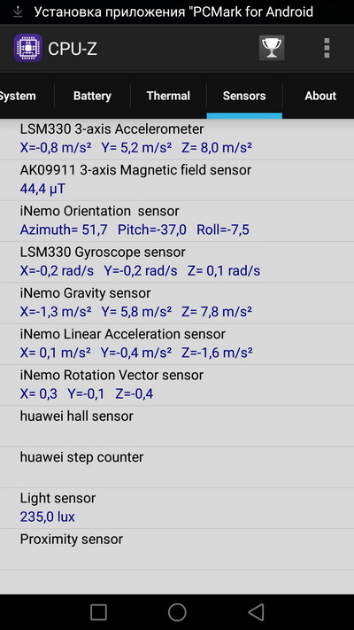 Дополнительно: гироскоп, датчик освещенности,