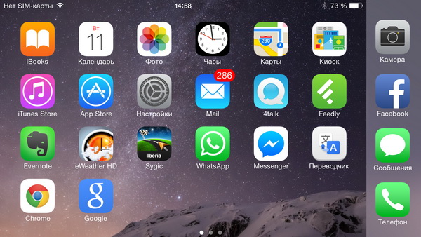 Здесь установлена iOS 8.1, об особенностях которой уже неоднократно выходили подробные статьи. Поэтому я себя и вас не буду утомлять подробным перечислением возможностей каждого приложения (у нас тут обзор смартфона, а не самой платформы), так что взглянем на программное обеспечение с высоты яблоневой верхушки.