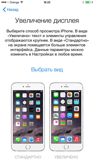 В настройках iPhone 6 Plus предлагает выбрать стандартный вид пиктограмм и текста и увеличенный.