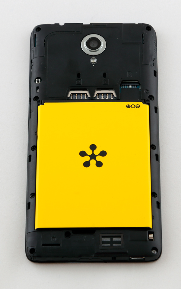 Под задней крышкой: съемный аккумулятор, два слота под microSIM, слот под карту памяти microSD.