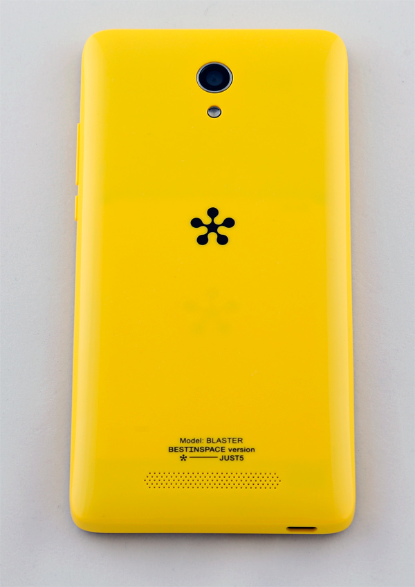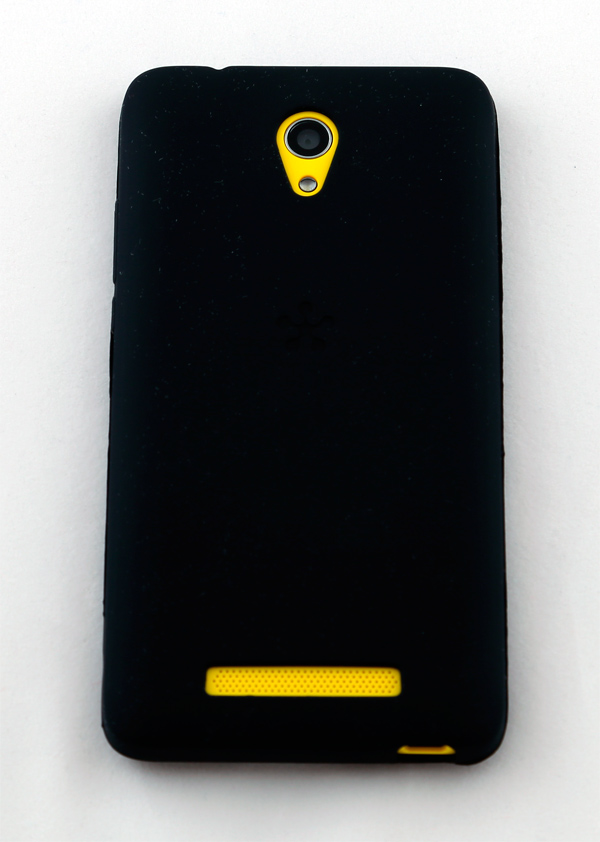 Черная задняя крышка сделана из матового пластика, желтая и белая - из глянцевого. Динамик расположен на задней крышке внизу. Выступов не имеет, значит, будет глушиться, когда телефон лежит на столе.