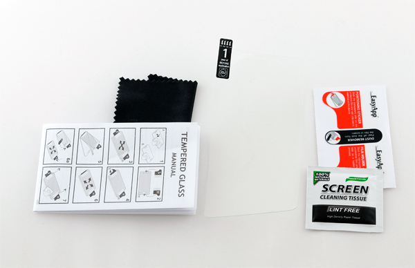 А комплект там интересный: стекло, инструкция, тряпочка для протирки и специальная салфетка для очистки поверхности смартфона.