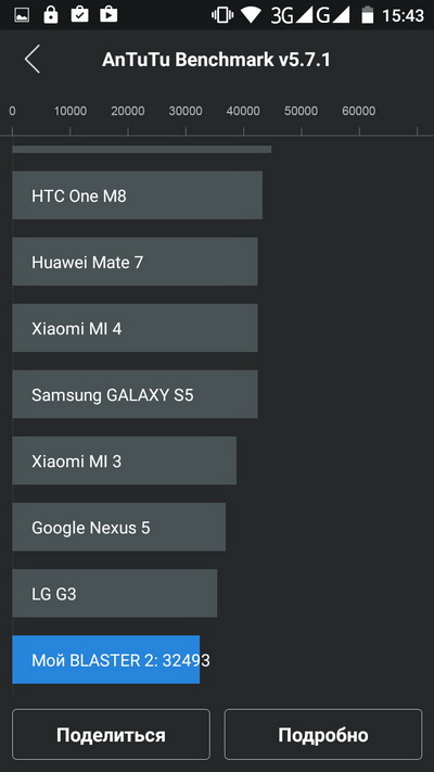 Быстродействие по AnTuTu - 32 493. Это вполне прилично. У Elephone P7000 эта программа выдала 36 197, а он покруче и дороже.