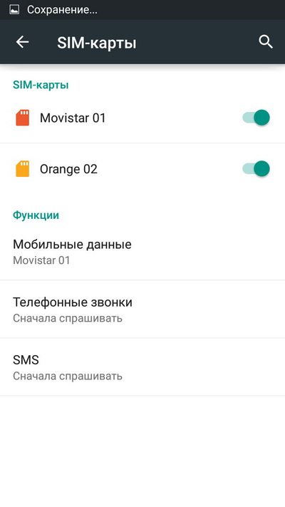 Настройка двух сим-карт.