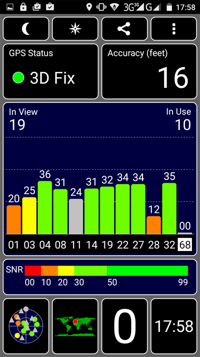 Сначала работа GPS не понравилась: координаты явно "плавали". Но я в программе "GPS тест" сделал Clear AGPS и Update AGPS, после чего координаты стали ловиться вполне прилично.