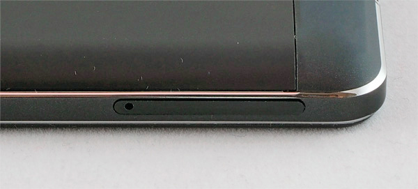 На левом торце сверху - слот под две сим-карты (или сим-карту и карту памяти). Кстати, в обсуждениях некоторые пользователи жаловались, что у них этот слот вставляется неплотно и его крышка слегка болтается, но у меня ничего подобного не наблюдается: слот сидит как влитой и никуда не выступает.