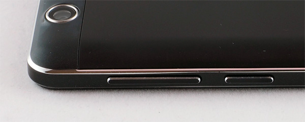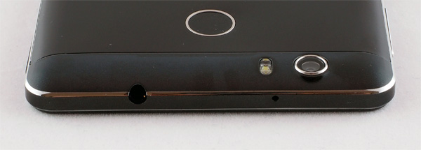 Ниже по центру расположен сканер отпечатка пальца, который также имеет металлическую окантовку. На нижней панели - сетка динамика, у которого справа-слева сделаны выступы, чтобы динамик не глушился.