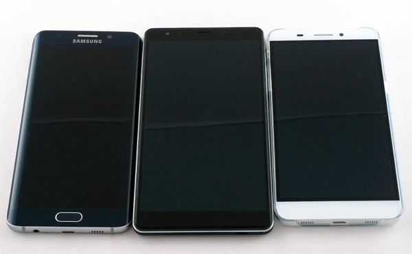 Вот этот смартфон рядом с Samsung Galaxy S6 edge+ и LetV (его обзор будет позже).