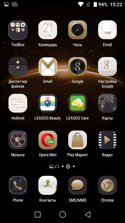 Android 5.1, оболочка LEAGOO OS 1.2. Кстати, по стилю оформления и настройкам оболочка слегка напоминает оболочку EMUI от Huawei.