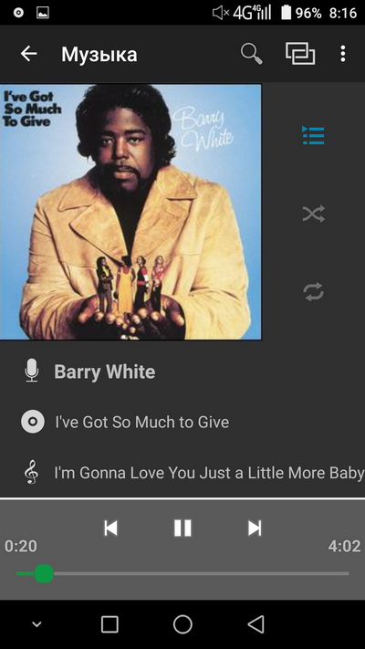 Музыкальный виджет на отдельном рабочем столе (довольно убогий виджет, замечу).