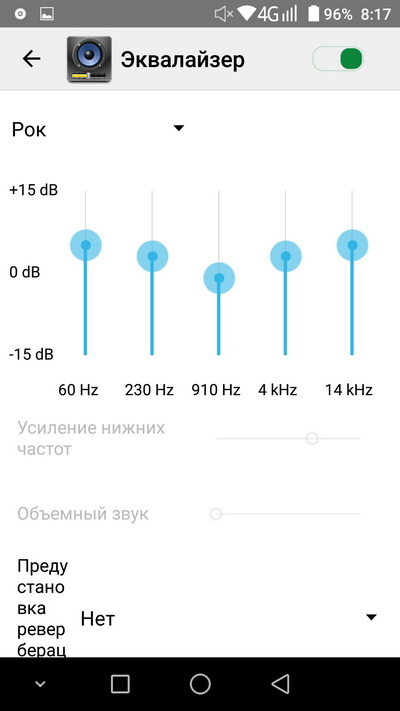 Полноразмерные наушники Plantronics BackBeat Pro в проводном режиме - неплохо: звук более или менее объемный, хорошие басы, но явный недостаток высоких. И вот тут эквалайзер не помог: толком мало что улучшил, при этом звук стал заметно тише и более гулкий.