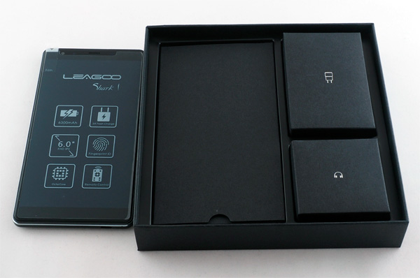 Похоже, что многие китайские производители переняли стиль упаковки у топовых смартфонов Huawei. (Впрочем, черт его знает, откуда там на самом деле ноги растут.) Вот буквально недавно: Ulefone Power - почти такая же коробочка, Oukitel K10000 - такая же коробочка. Ну и у Leagoo - черный невысокий параллелепипед, хотя материал упаковки сильно проще, чем у Huawei (но те и стоят заметно дороже, конечно).