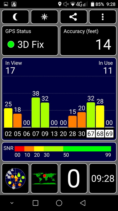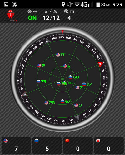 Спутники ловит очень быстро (несколько секунд), координаты определяет устойчиво. Поддерживаются GPS и ГЛОНАСС.