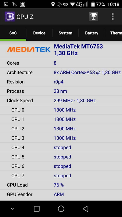 Процессор: MediaTek MT6753T, 1,3 ГГц, 8-ядерный
