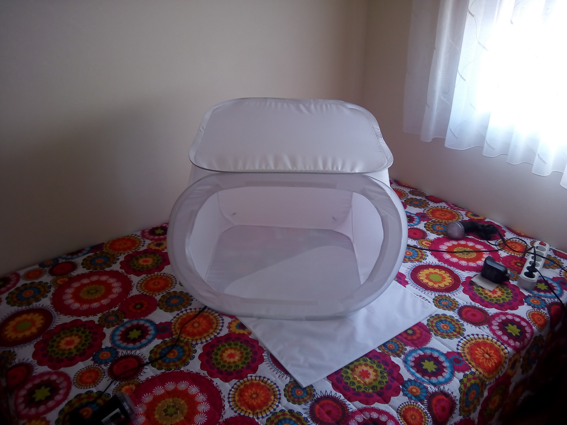 Лайт-куб для съемок гаджетов с помощью ламп-вспышек. Стенд мой в гостевой комнате 😉