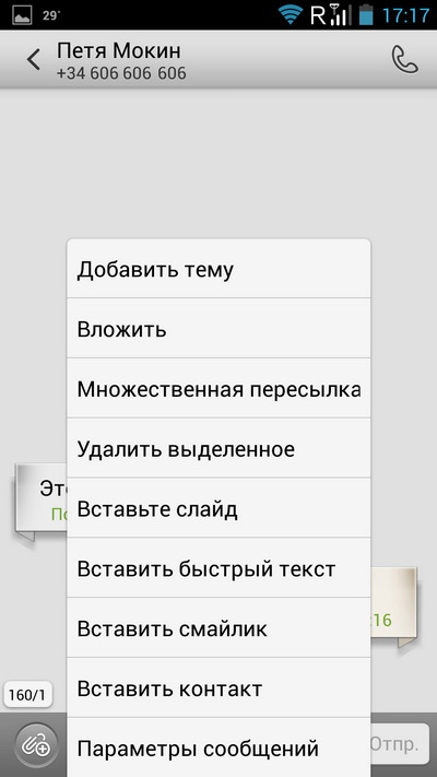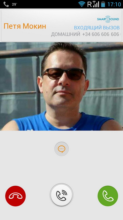 Входящий звонок. Можно ответить SMS со стандартным шаблоном.