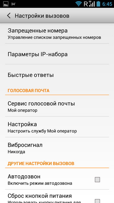 Меню звонка. Можно включать шумодав (действительно немного улучшает слышимость на улице), регулировать уровень микрофона.