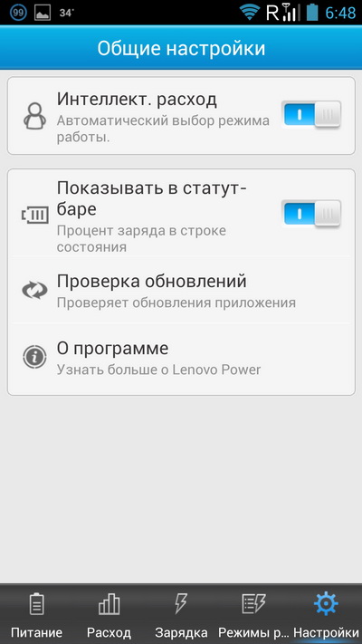 Второй рабочий стол с виджетом настройки оптимального расхода энергии.
