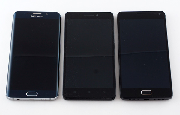 Ну и вот этот смартфон рядом с Samsung Galaxy S6 edge+ и солидным Lenovo Vibe P1 (его обзор скоро будет).