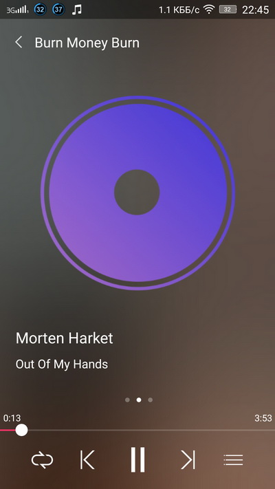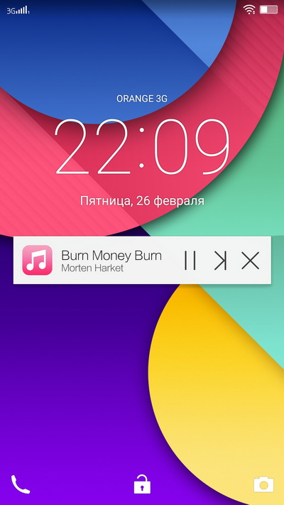 Окно блокировки с виджетом аудиоплеера.