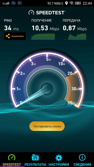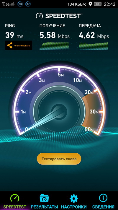 Мобильный Интернет и Wi-Fi показали нормальную скорость для данных условий тестирования.