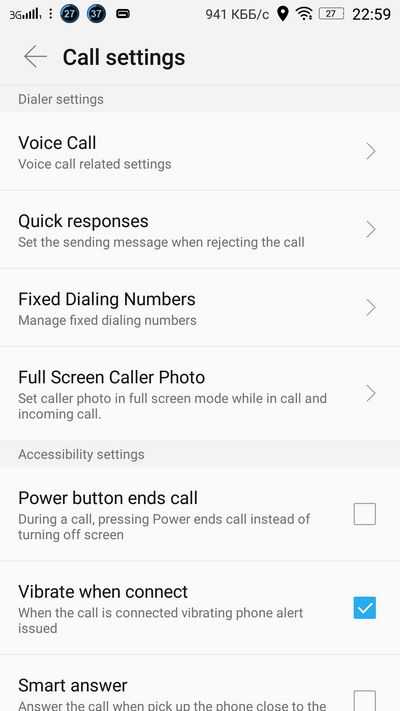 Параметры телефонного приложения.
