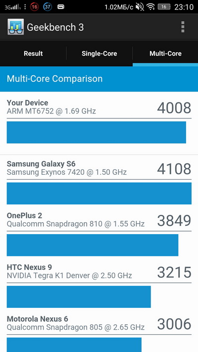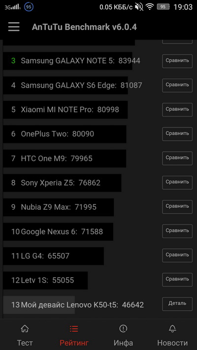 По сравнению с флагманами индекс в два раза меньше. Но оно так и ожидалось. Тем более что в общем и целом индекс очень даже пристойный. У того же Cubot H1 (стоит тех же денег) по этому тесту индекс в два раза меньше.