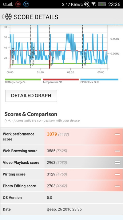 В общем и целом - нормально: примерно так, как и ожидалось. Однако замечу, что тот же Samsung Galaxy S6 edge+ с дисплеем 5,7, разрешением QHD и аккумулятором такой же емкости два дня спокойно живет от одного заряда. Впрочем, не будем забывать, что он стоит раз в пять дороже.