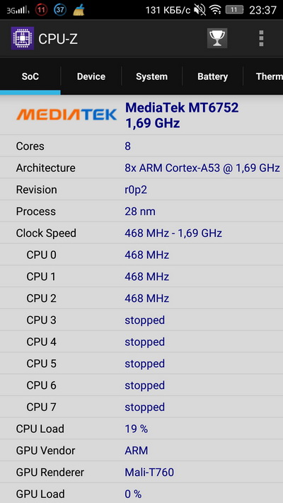 Процессор: Mediatek MT6752, 8 ядер, 1,7 ГГц