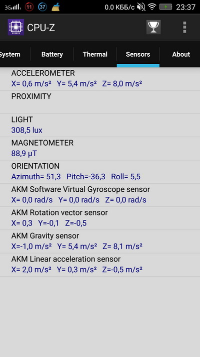 и освещения, акселерометр, электронный компас,