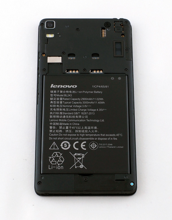 Под крышкой - отсек с аккумулятором, слот под microSD и два слота под microSIM.