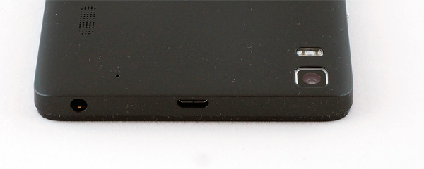 Съемная задняя крышка также покрывает торцы смартфона: управляющие клавиши находятся на этой крышке. Глазок камеры расположен в верхнем левом углу, под ним - двухсегментная вспышка. Сетка динамика располагается справа сверху на задней части крышки.