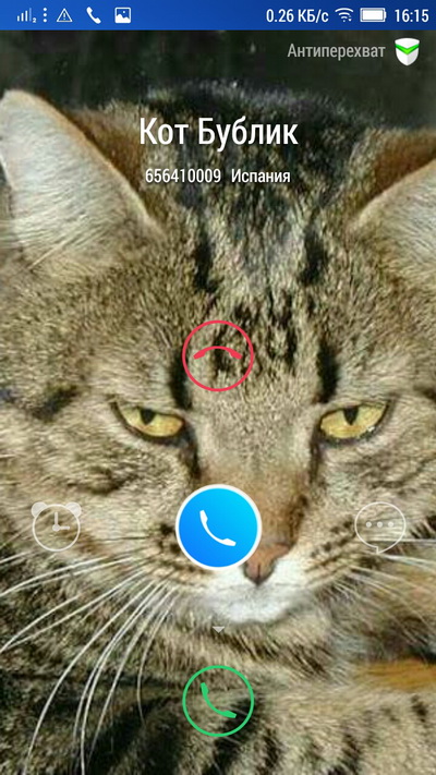 Входящий звонок. Тут можно принять звонок, сбросить, ответить сообщением или запланировать ответный звонок через минуту или через час.
