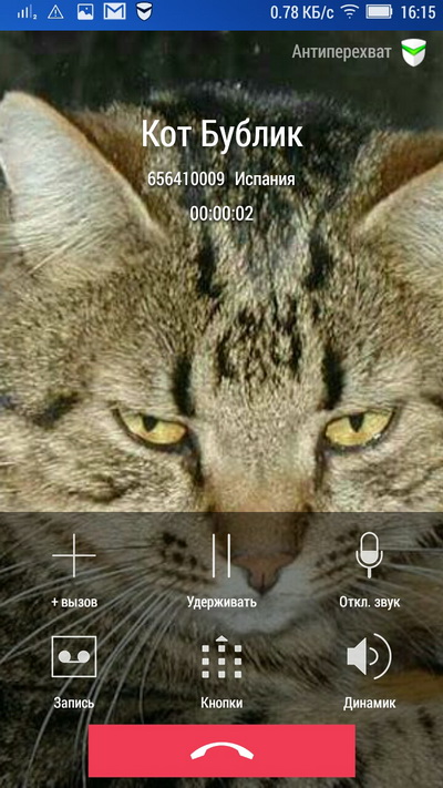 Опции при разговоре. Обратите внимание, что присутствует возможность записи.