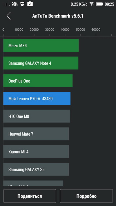 Интерфейс системы работает плавно, задержек и тормозов я не замечал. Приложения работают шустро.  AnTuTu выдал ему 43 439 попугаев.