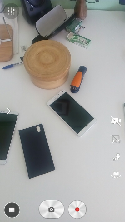 Простенький интерфейс, в виде отдельных пиктограмм вынесено включение HDR, управление вспышкой, смена камеры и включение замедленной съемки.