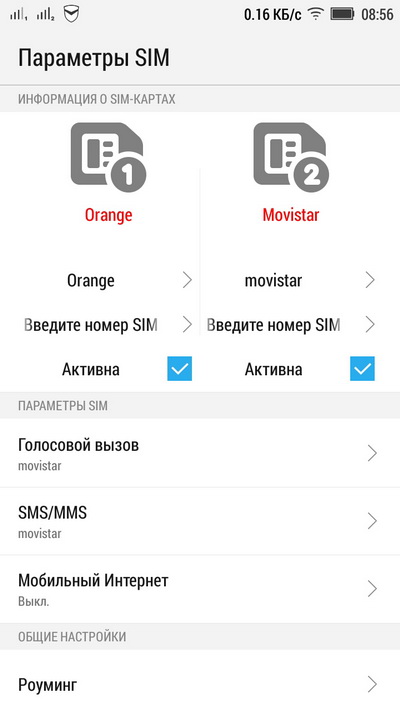 Ну и так как тут две сим-карты - вы можете выбирать, чем пользоваться для звонков, сообщений и Интернета.