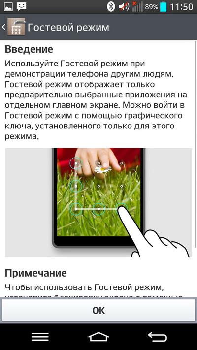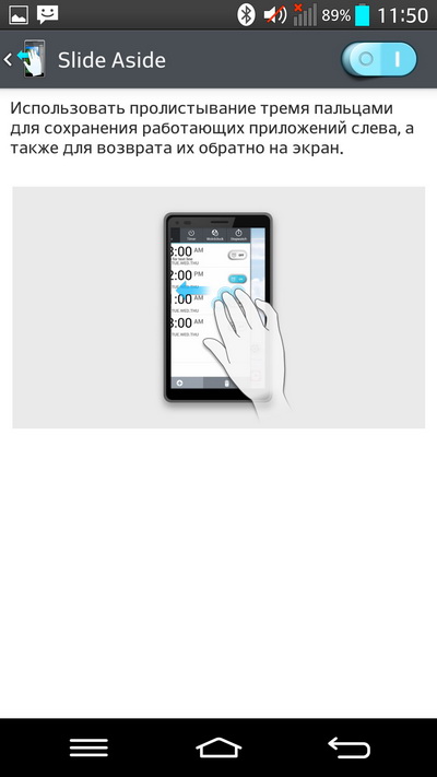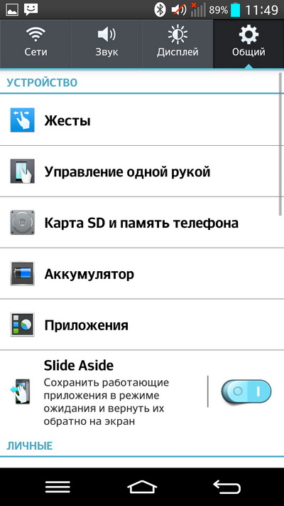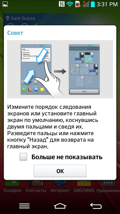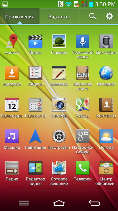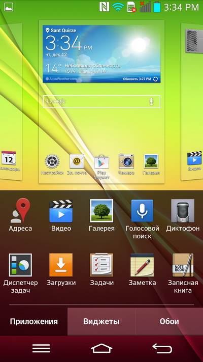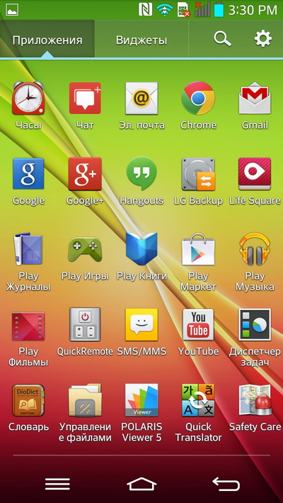 Смартфон работает на Android 4.2.2, однако здесь установлена собственная оболочка и заменены все системные приложения. Также установлено несколько специфических приложений разработки LG и других компаний.