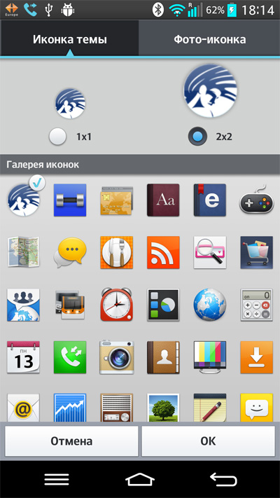 У иконок можно не только менять картинки, но и увеличивать размер в четыре раза. Также можно создавать фотоиконки - из любых изображений.