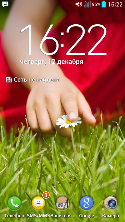 Главный рабочий стол. Сразу обратите внимание на экранные кнопки снизу: возврат, домой и меню. Так вот, здесь эти экранные кнопки можно менять местами и настраивать - это очень и очень удобно, никогда такого не видел.