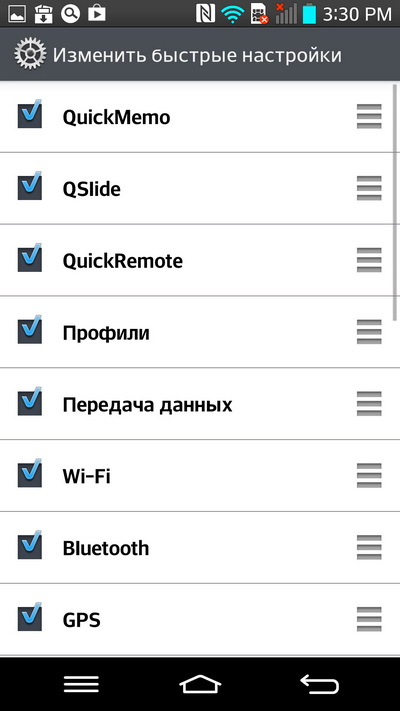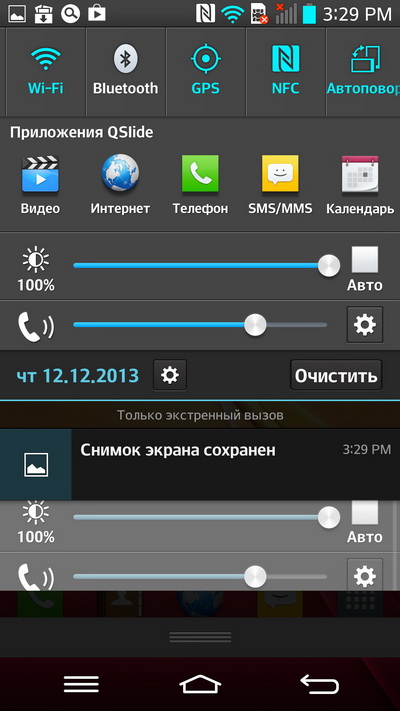 Богатая область уведомлений: скроллируемые пиктограммы быстрых настроек, приложения QSlide (о них чуть ниже), настройка яркости и громкости.